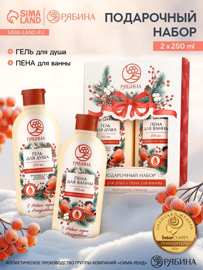 Подарочный набор женский «С Новым годом и Рождеством», гель для душа и пена для ванны 2×250 мл, РЯБИНА