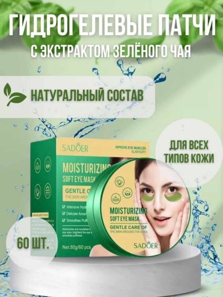 SADOER Увлажняющие гидрогелевые патчи с экстрактом зеленого чая, 60 шт