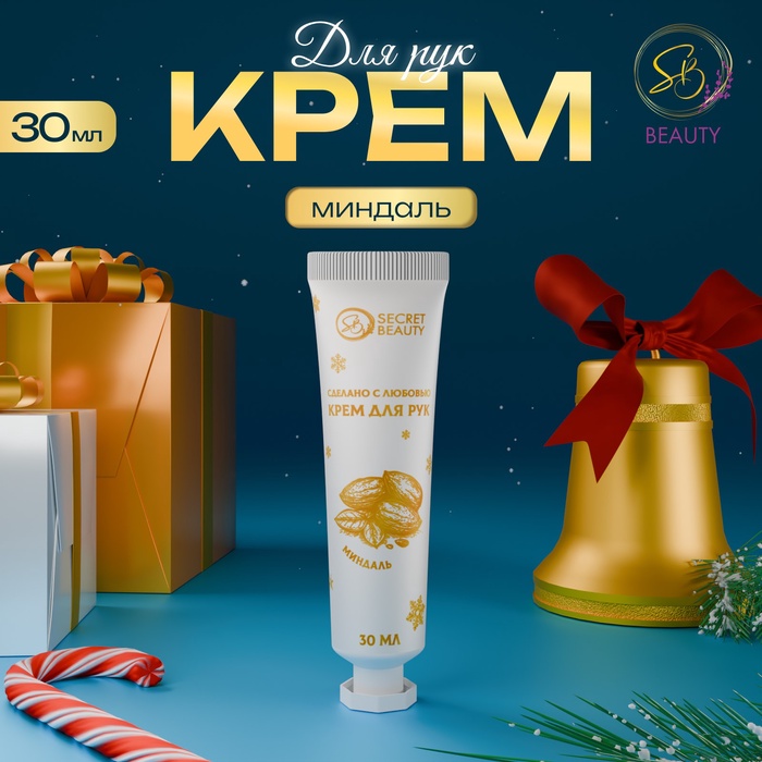 Новогодний крем для рук с ароматом миндаля, увлажняющий, 30 мл