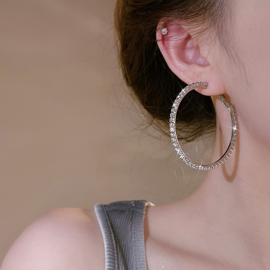 Эти серьги кольца из серебристого м..показатьеталла добавят блеска к вашему образу. Они идеально подходят для любого повода и приятно выделяются на фоне остальных аксессуаров. Сияющие кристаллы акцентируют внимание.Прекрасно сочетаются с любым стилем одежды. Классический вариант отлично подойдёт для вечернего выхода или светского события. Замок булавка обеспечивает надежность и лёгкость в использовании.