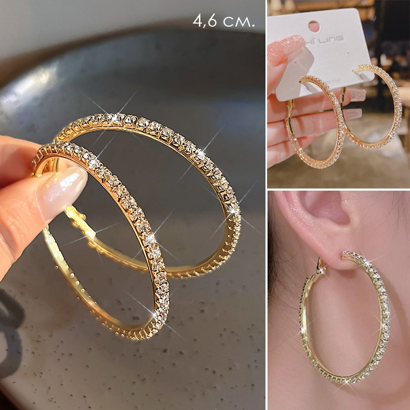 Эти серьги кольца из золотистого ме..показатьталла добавят блеска к вашему образу. Они идеально подходят для любого повода и приятно выделяются на фоне остальных аксессуаров. Сияющие кристаллы акцентируют внимание.Прекрасно сочетаются с любым стилем одежды. Классический вариант отлично подойдёт для вечернего выхода или светского события. Замок булавка обеспечивает надежность и лёгкость в использовании.