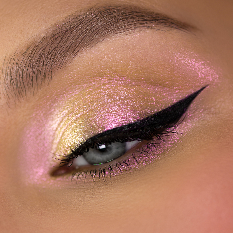 Переливающийся разнодисперсный 3D-глиттер создает на веках тончайшее, одновременно объемное металлическое и дуохромное сияние, зависимо от выбранного оттенка. Создают на веках мерцание, особенно выигрышно смотрится при искусственном освещении.
