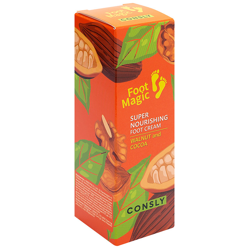 Крем для ног с экстрактом какао и грецкого ореха интенсивно питает сухую кожу стоп, предотвращая появление трещин и шелушений. Экстракт какао насыщает кожу полезными веществами, регенерирует и восстанавливает поврежденную кожу стоп. Экстракт грецкого ореха способствует укреплению защитного барьера кожи, сохраняя ее мягкой и гладкой на долгое время. Крем быстро впитывается, не оставляя ощущения липкости.