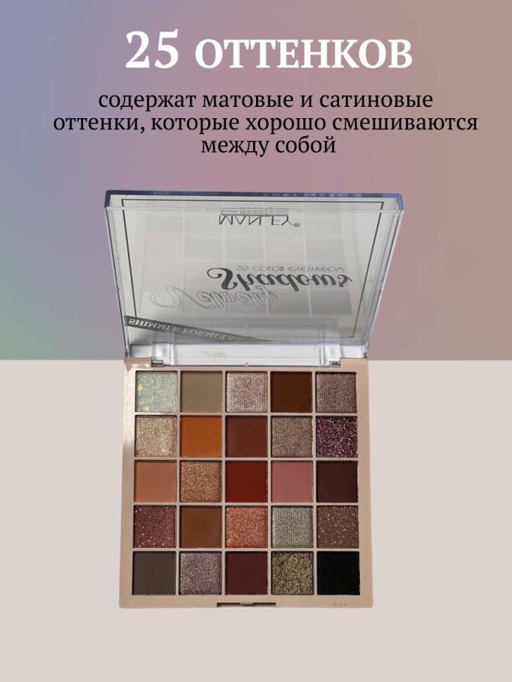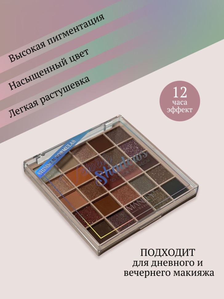 Создайте идеальный образ с новыми палетками теней из 25 оттенков! Тени с высокой пигментацией, наносятся равномерно и выглядят ультра-бархатными и шелковистыми.
