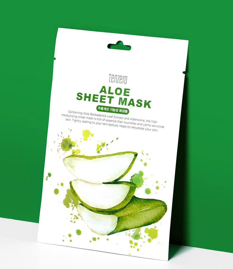 TENZERO ALOE SHEET MASK – Лист маски, наполненный эссенцией, содержащей экстракт листьев алоэ вера и аденозин, которые помогают уменьшить морщины на коже. И идеально прилегает к лицу, не поднимаясь и не падая, более эффективно доставляя богатые активные ингредиенты на кожу.