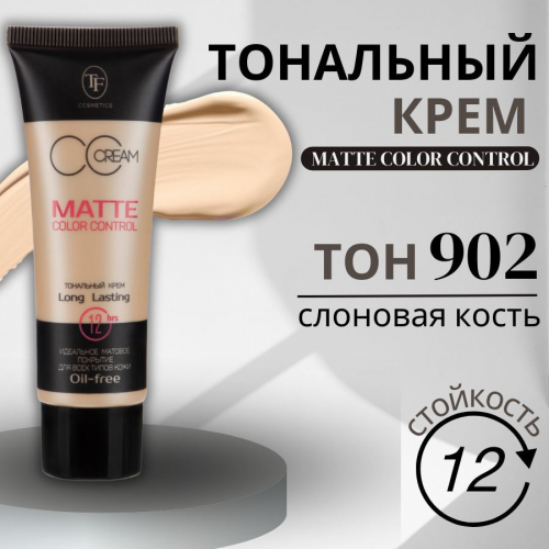 Стойкий тональный крем TF Cosmetics Matte Color Control, обеспечивающий ровный цвет лица и матовый финиш в течение всего дня, подходит для всех типов кожи. Легкая флюидная формула без масел, позволяет создать невесомое бархатное покрытие. Высокие выравнивающие и маскирующие качества текстуры крема обеспечивают стойкий и комфортный макияж в течение 12 часов. Равномерно распределите небольшое количество тонального крема на лице, затем легкими движениями растушуйте от центра к периферии, при необходимости можно использовать косметический спонж или кисть Состав: Aqua/water, cyclopentasiloxane, butylene glycol, ethylhexyl methoxycinnamate, phenyl trimethicone, squalane, bis-peg/ppg-14/14 dimethicone, magnesium sulfate, talc, nylon -12, maltitol, disodium stearoyl glutamate, aluminum hydroxide, sorbitol, perlite, vaccinium myrtillus fruit extract, [+/- may contain, ci77891 / titanium dioxide, ci77491, ci77492, ci77499/iron oxides]; Цвет: бежевый;