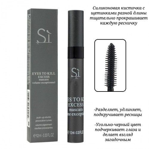 Giorgio Armani " Si " Eyes Kill Excess Mascara сочетает в себе HD объём и длину XXL. Новая формула туши обогащена ингредиентами для ухода за ресницами: витамин В5 укрепляет ресницы и ускоряет их рост при каждом использовании.Силиконовая кисточка уникальной формы обеспечивает легкое нанесение с максимальным эффектом .