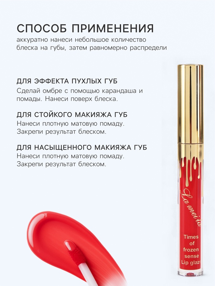 * Водостойкая формула сохраняет цвет на губах в любых условиях.