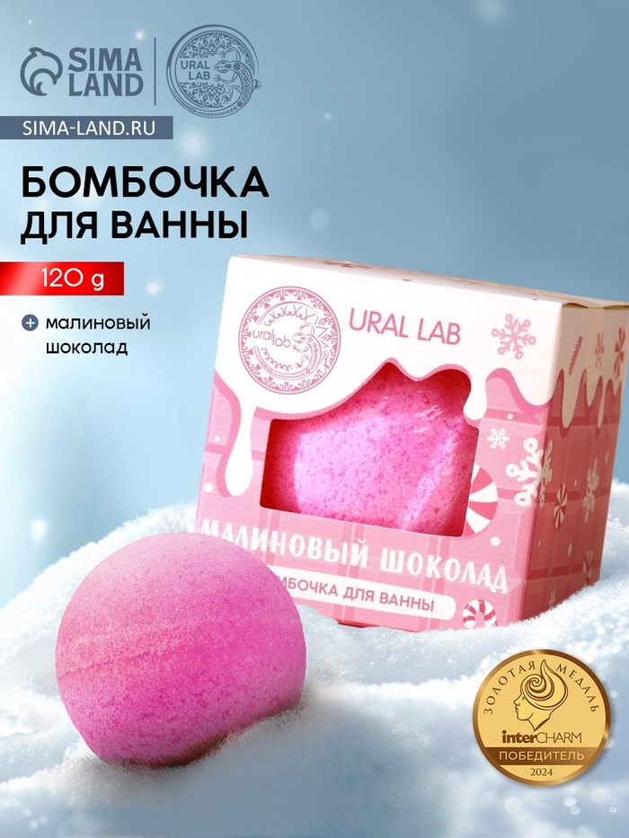 Бомбочка для ванны, 120 г, аромат малинового шоколада, URAL LAB