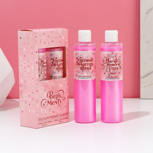 Составляющие набора: Бомбочка для ванн, Гель для душа, Мочалка
