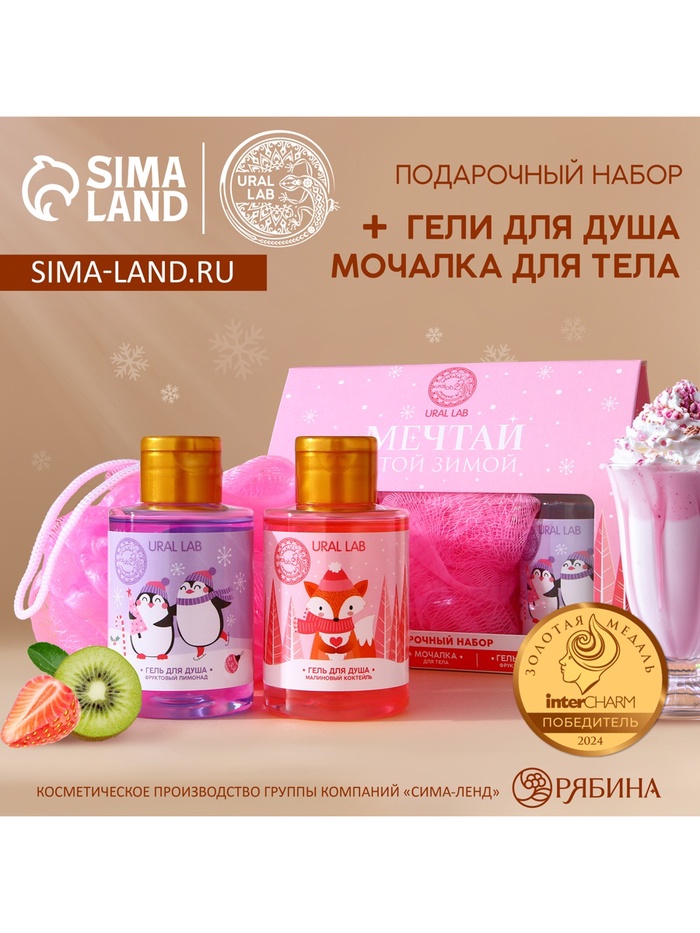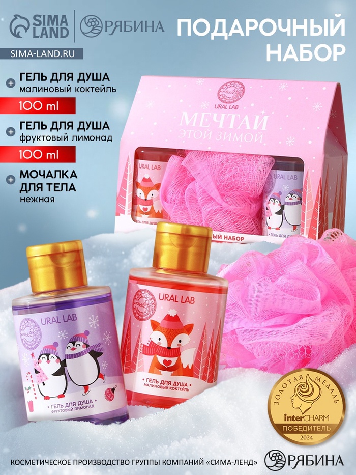 Новогодний подарочный набор косметики «Мечтай»: гель для душа 2×100 мл и мочалка для тела, URAL LAB