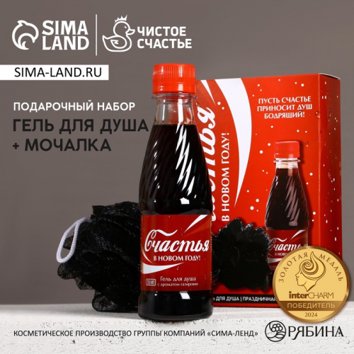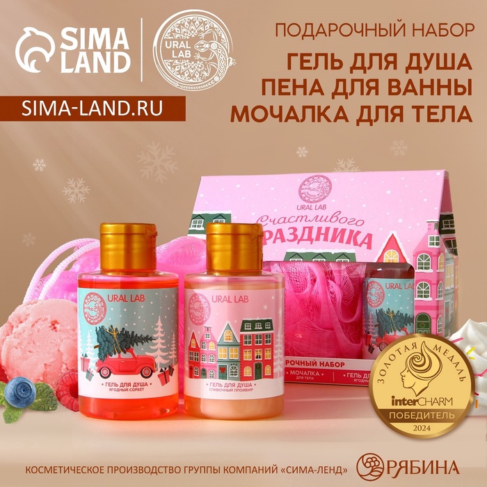 Новогодний подарочный набор косметики «Счастливого праздника», гель для душа 2×100 мл и мочалка для тела, URAL LAB