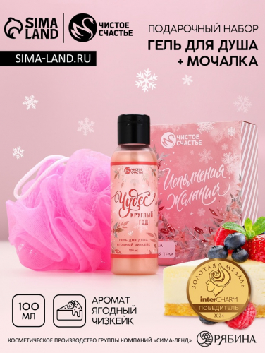 Подарочный набор новогодний женский «Зимнее чудо»: мыло для рук кусковое 100 г и мочалка для тела, URAL LAB