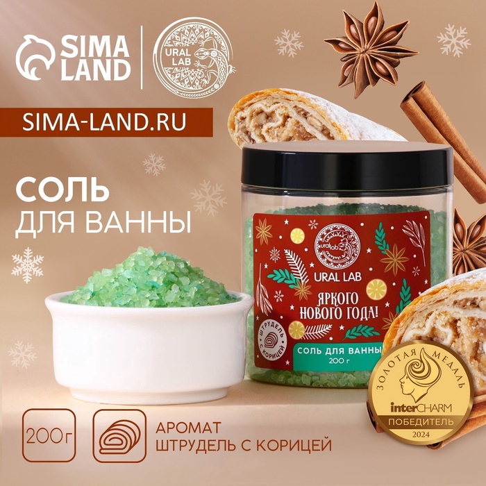 Соль для ванны URAL LAB «Яркого года», 200 г, аромат штруделя с корицей