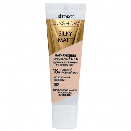 Витэкс LUXSHOW Silky Matt Матирующий тональный крем (30мл) без эффекта маски, т.101 Светлый беж