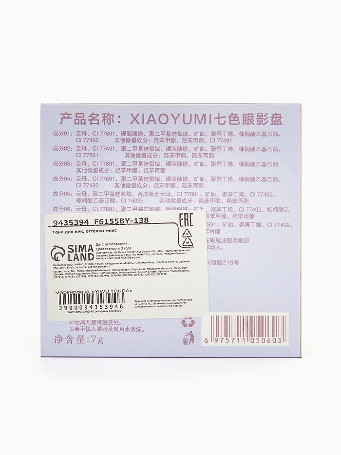 Состав 07: Слюда, CI 77491, диметикон, стеарат магния, CI 77891, минеральное масло, полиизобутилен, CI 77492, этилгексилпальмитат; другие компоненты: метилпарабен, пропилпарабен.