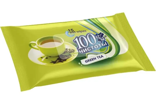 100% Чистоты Влажные салфетки (15шт) с ароматом Зеленого чая п/п.140 арт-2/1/15-1