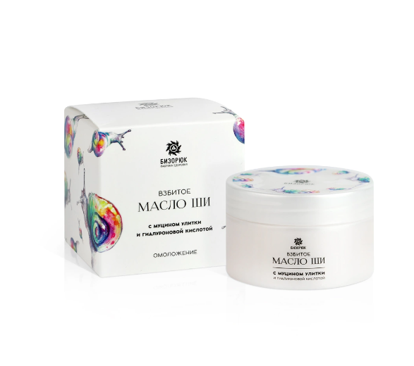 Масло Ши взбитое с муцином улитки и гиалуроновой кислотой Омоложение, пластик, 50 мл,"Бизорюк"