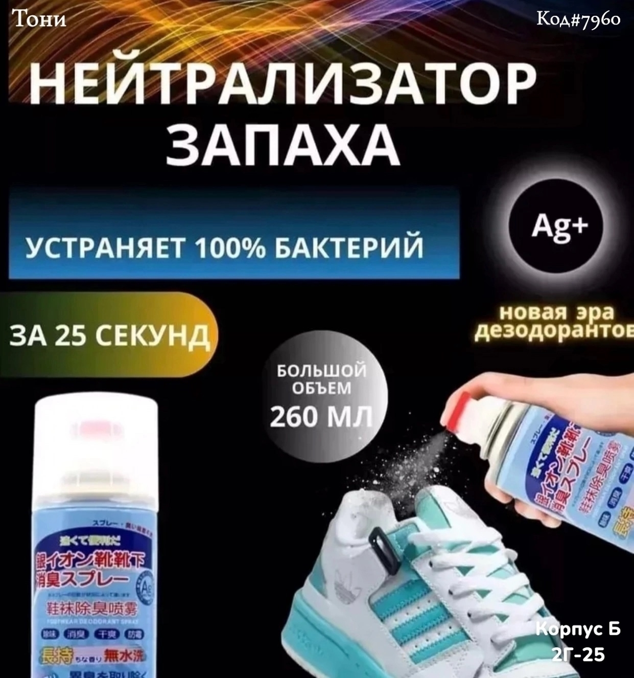 Дезодорант-спрей для обуви от запаха (Код#7960)