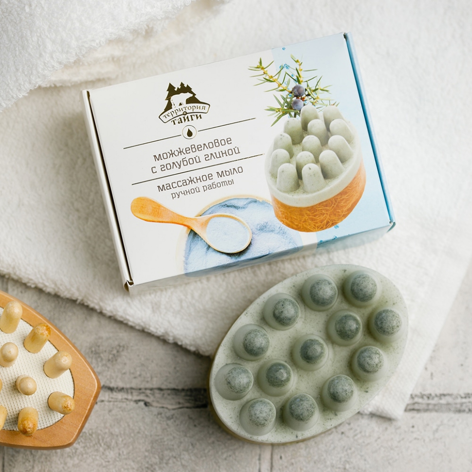 Массажное мыло «Можжевеловое с голубой глиной» 130 г