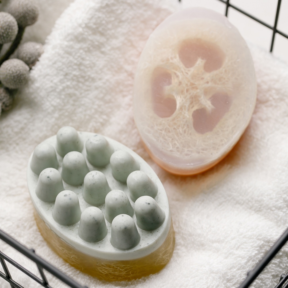 Входящее в состав массажного мыла можжевеловое масло - это не только уникальный дар природы, но и отличная ароматерапия! Оно обладает противовоспалительными и ранозаживляющими свойствами. Благодаря содержанию в составе голубой глины, массажное мыло создает эффект легкого пилинга, бережно очищает кожу, способствует восстановлению упругости и эластичности. В состав мыла входит люфа - губка из одноименного растения. Массажное мыло подойдет для любого типа кожи, а при помощи его удобной формы можно с легкостью прорабатывать проблемные зоны.
