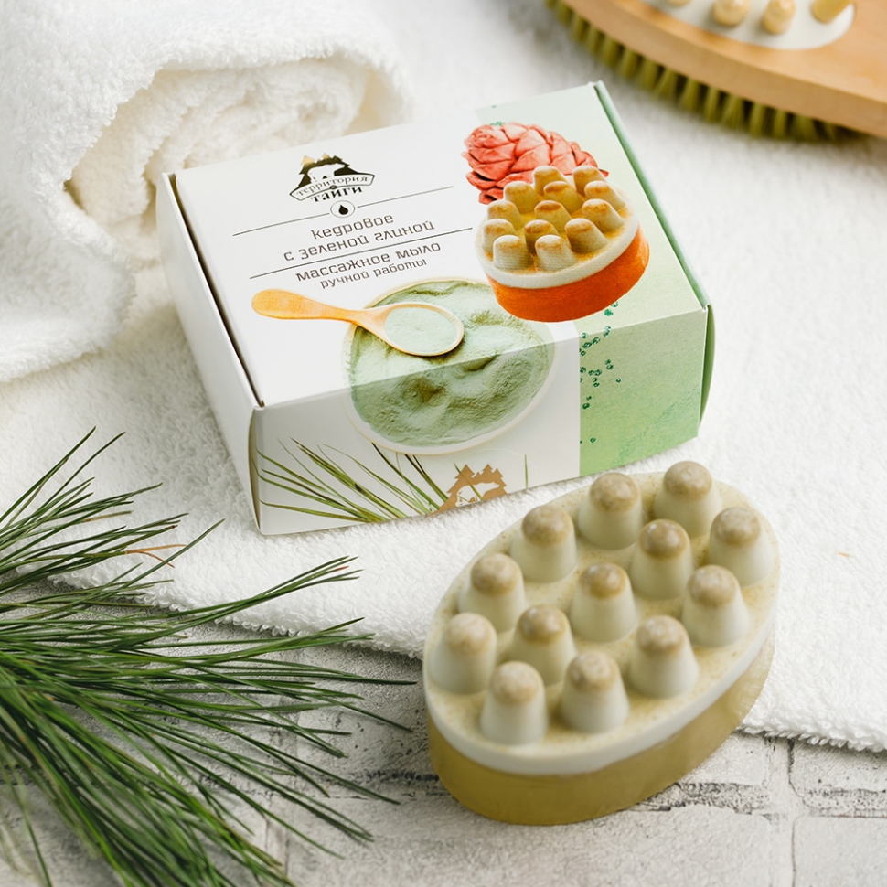 Массажное мыло «Кедровое с зеленой глиной» 130 г