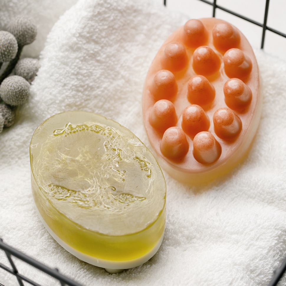 Состав: органическая мыльная основа, эфирное масло лимона, ароматическое масло, розовая глина, люфа.