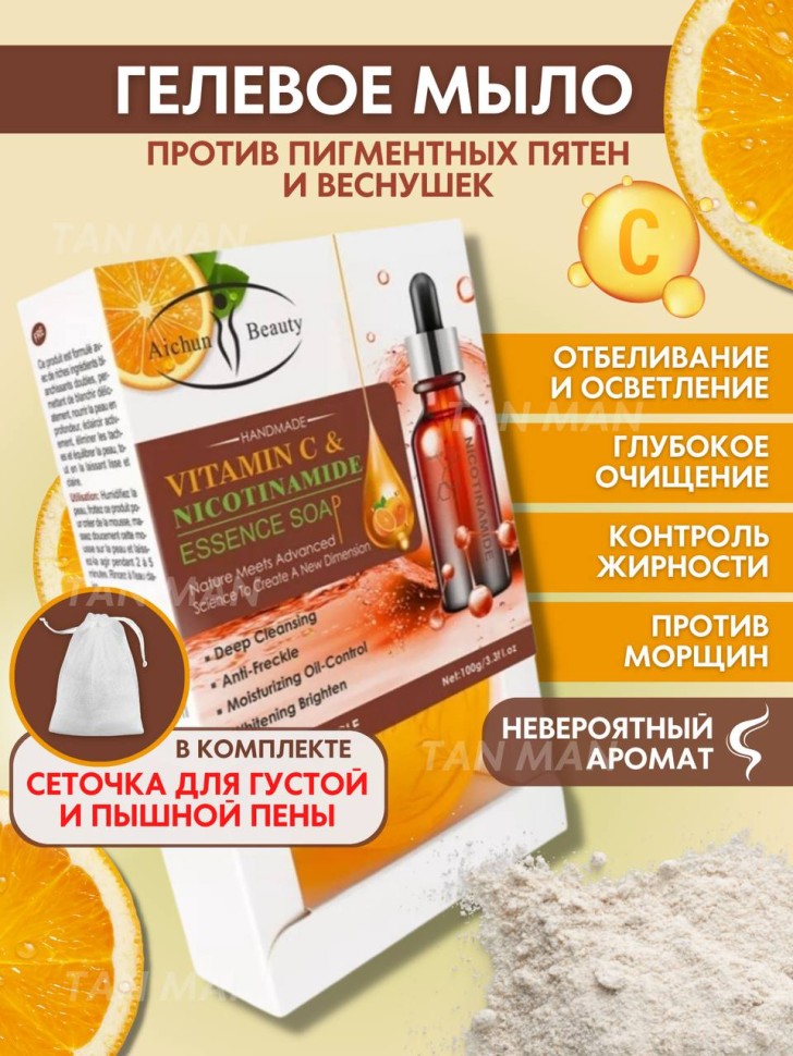 AICHUN BEAUTY Мыло Гелевое VITAMIN C & NICOTINAMIDE Выравнивающее Против веснушек и пигментных пятен Витамин С и Ниацинамид 100г (AC-3052)