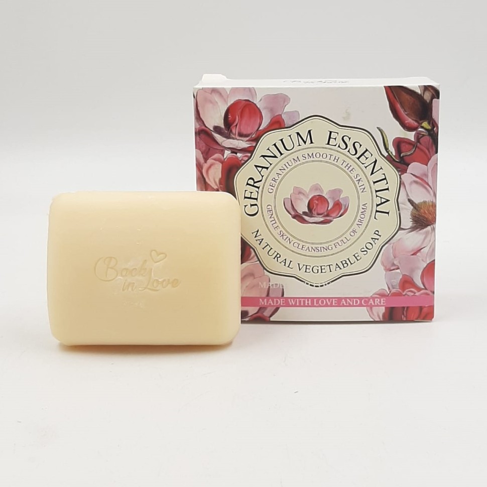 AILUSHI Мыло Ароматное GERANIUM Essential РОЗА, КОКОС (в коробочке) 130г