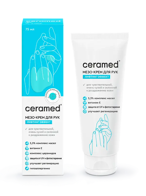 Мезо-крем для рук Ceramed воздействует на причину ухудшения качества кожи рук, восполняя клеточный запас влаги и удерживая ее в эпидермисе. Антистрессовый комплекс в составе крема подтягивает кожу, укрепляет сетку из эластиновых и коллагеновых волокон, способствуя ее защите и восстановлению. Ежедневное применение крема поможет коже стать более гладкой, сияющей и молодой. Активные вещества в составе поддерживают оптимальный уровень увлажнения, благодаря чему кожа становится более упругой и эластичной. Коллаген помогает заполнять межклеточные пустоты, оказывая лифтинг-эффект, а глюконолактон способствует уменьшению морщин, защищая от агрессивных факторов.