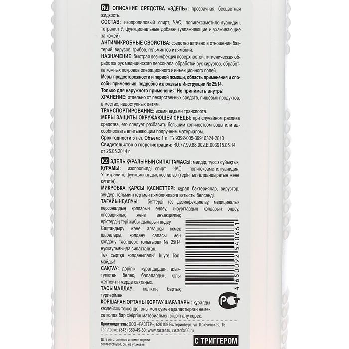 Антисептик кожный Эдель, с триггером, 1 л