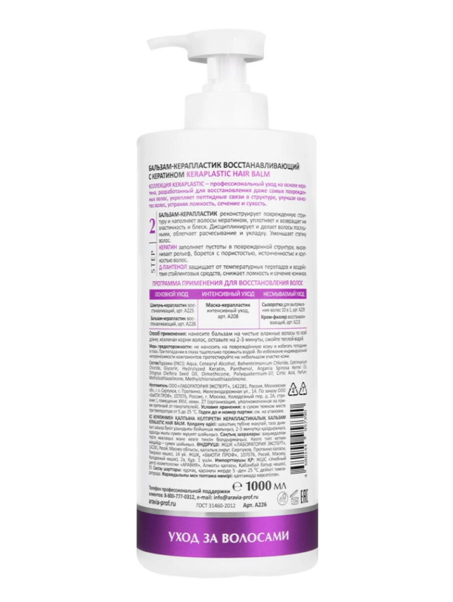 Aravia Laboratories Бальзам-керапластик восстанавливающий с кератином / Keraplastic Hair Balm, 1000 мл
