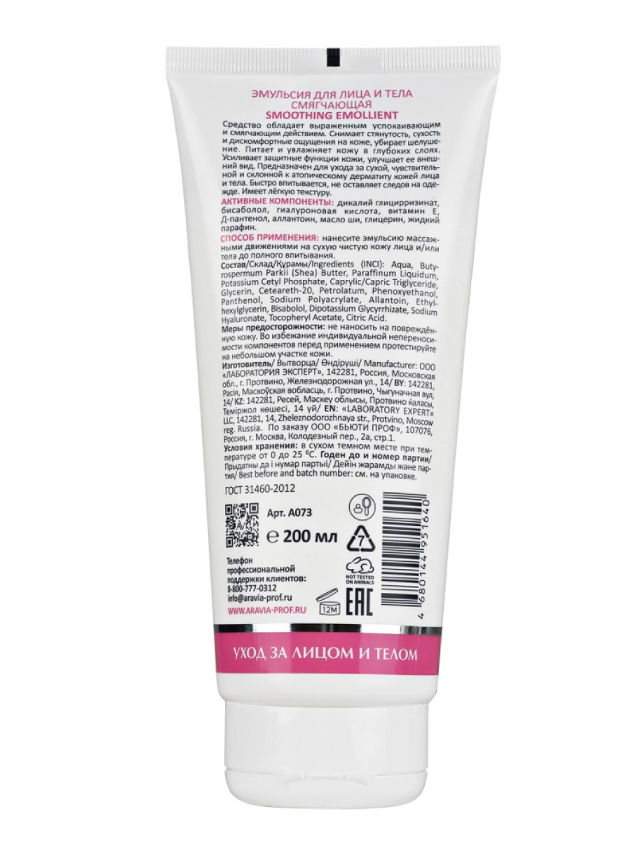 Меры предосторожности: не наносить на повреждённую кожу. Во избежание индивидуальной непереносимости компонентов перед применением тестировать на маленьком участке кожи. Продукт сертифицирован. Не тестируется на животных.