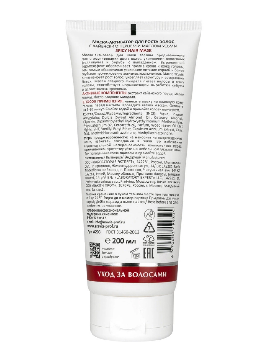 Aravia Laboratories Маска-активатор для роста волос с кайенским перцем и маслом усьмы / Spicy Hair Mask, 200 мл