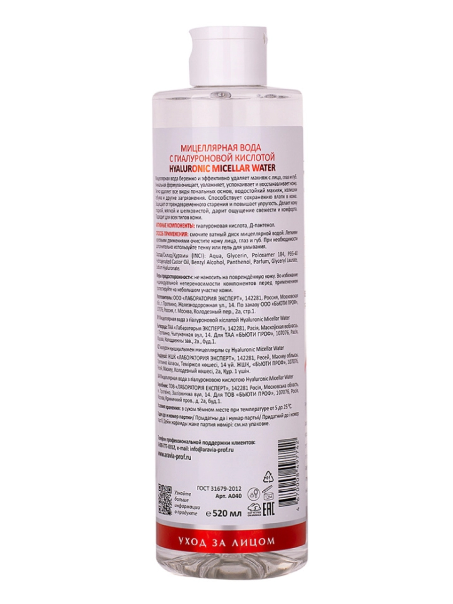 Aravia Laboratories Мицеллярная вода с гиалуроновой кислотой / Hyaluronic Micellar Water, 520 мл