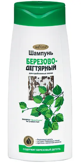 Шампунь "Березово-дегтярный" предназначен для проблемных волос склонных к быстрому загрязнению, образованию перхоти и излишнего жира. Он насыщен только натуральными самыми активными компонентами, которые оздоравливают волосы и кожу головы. Природный компонент деготь оказывает терапевтическое и дезинфицирующее действие. Экстракт березовых почек, натуральный протеин и молочная кислота стимулируют регенерацию эпидермиса и улучшают кровообращение кожи головы
