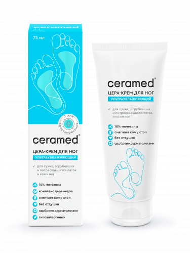 Кожа ног чаще подвержена сухости. Постоянные нагрузки влияют на избыточное ороговение кожи стоп. Базовая формула крема способствует глубокому увлажнению и смягчению сухой и потрескавшейся кожи. Биосинергия компонентов позволяет глубокого увлажнять и интенсивно питать кожу ног, оставляя ее мягкой и увлажненной. Идеально подходит для чувствительной, сухой и склонной к раздражению кожи ног. Базовый принцип продуктов Ceramed (Церамед) заключается в Биосинергии компонентов. Церамиды - ключевые структурные элементы рогового слоя, несут в себе функцию межклеточного липидного цемента. При повреждении кожи заполняют межклеточное пространство, уменьшают трансэпидермальную потерю влаги. Мочевина способствует отшелушиванию ороговевших клеток, создавая кератолический эффект, кожа освобождается от отмерших клеток и обновляется. Обладает гигроскопическими свойствами - повышает степень увлажнения в эпидермисе.