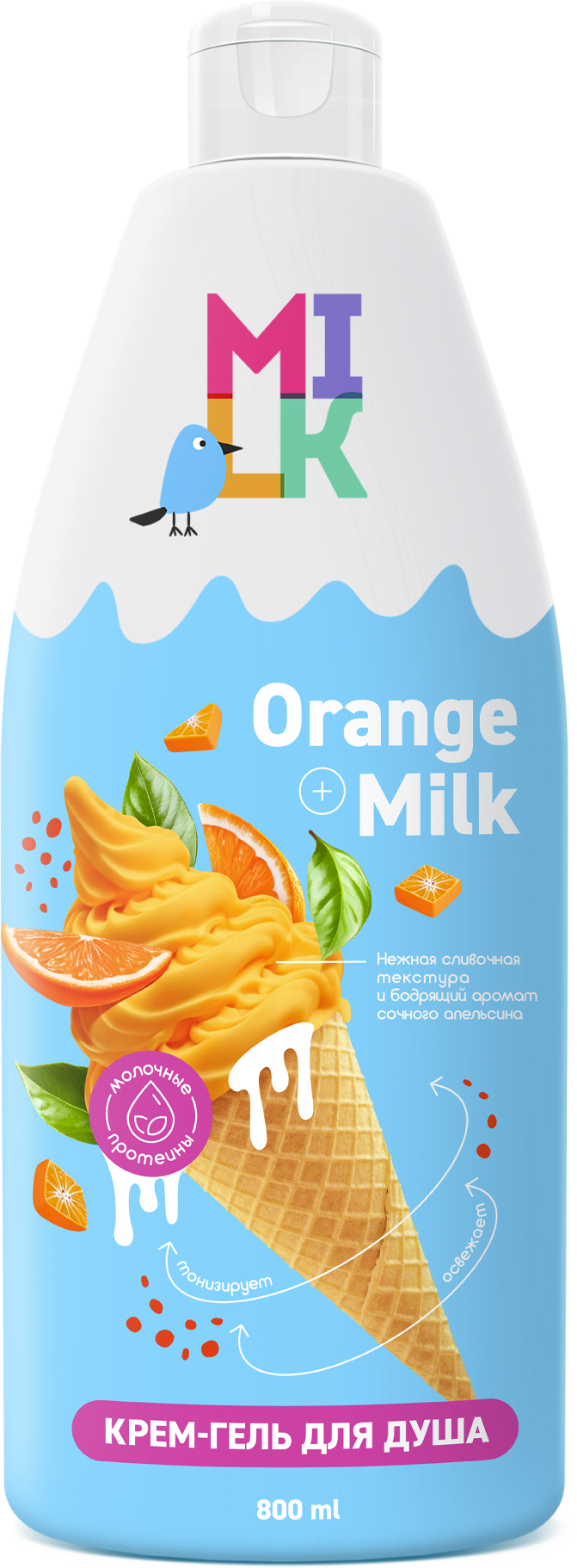 Нежная текстура крем-геля для душа бережно очищает кожу, наполняет ее ароматом сочного апельсина и насыщает полезными микроэлементами. Благодаря формуле крем-геля, усиленной протеинами молока и натуральным экстрактом апельсина, кожа получает необходимое питание и увлажнение. Хорошего настроения!
