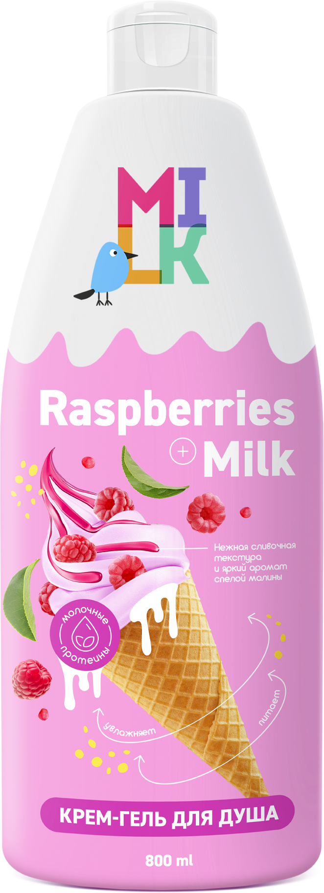 Яркий соблазнительный аромат придется по вкусу молодым людям и девушкам. Вы просто влюбитесь в этот крем-гель для душа Milk Молоко и малина! Его аромат сочных спелых ягод в сливочном пломбире просто невероятен - каждый раз, когда Вы откроете бутылочку, окутаете себя ароматом клубничного летнего десерта. Обогащенный протеинами молока и экстрактом малины крем-гель очень нежный и мягкий на коже, не вызывает раздражения и сухости. Крем отлично пенится, поэтому небольшого количества хватает на всю кожу. После использования пушистой густой кремовой пенки для очищения, кожа становится гладкой, увлажненной и нежной на ощупь. .