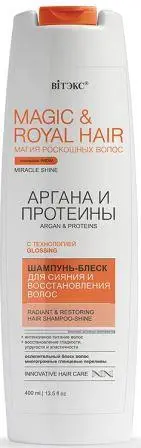 Роскошный шампунь с арганой и тремя видами протеинов создан на основе революционной технологии GLOSSING, направленной на глубокое восстановление волос и создание ослепительного, поистине магического сияния.