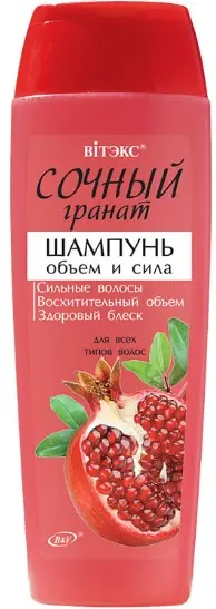 Благодаря специальной кондиционирующей добавке, входящей в состав шампуня "Сочный гранат", Ваши волосы приобретут дополнительный объем, будут выглядеть сильными и здоровыми. Приятный аромат сочного граната надолго сохранит граната надолго сохранит ощущение свежести и чистоты Ваших волос.