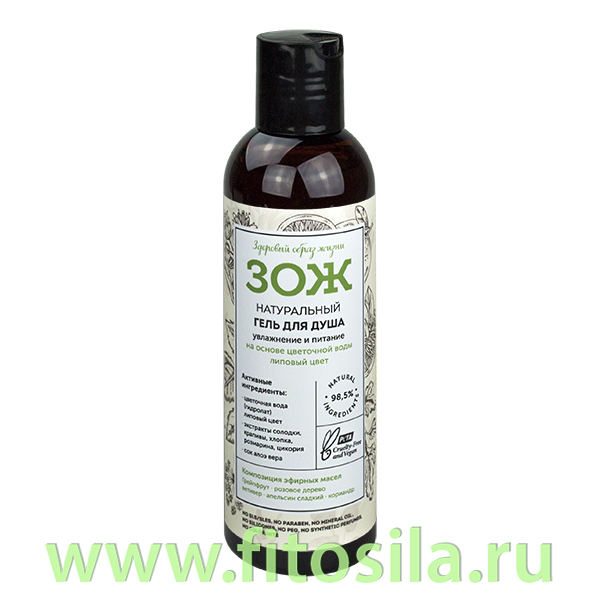 Гель для душа увлажнение и питание "ЗОЖ" создан на основе цветочной воды липового цвета.