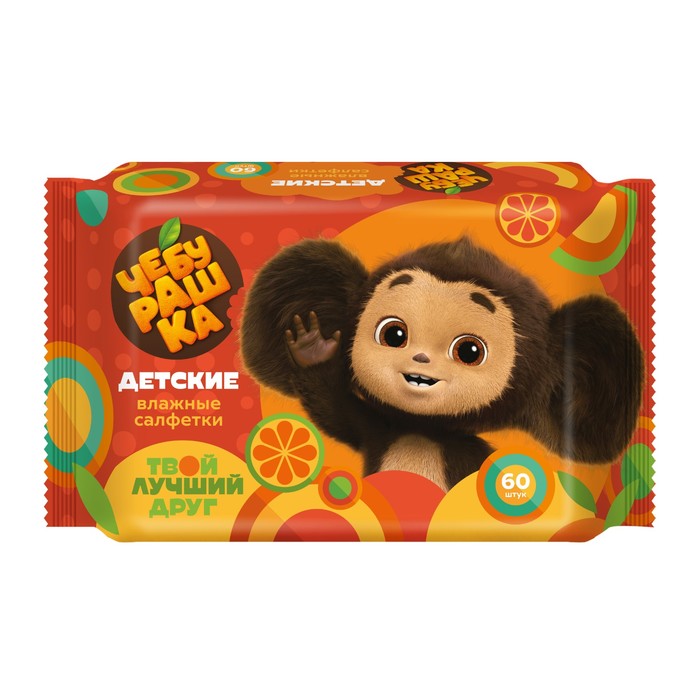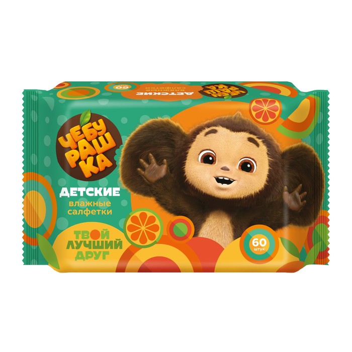 Влажные салфетки детские Чебурашка, 60 штук миксы