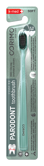 Зубная щетка Corimo Parodont мягкая специально разработана для ухода за полостью рта при патологии пародонта. Сердцевина щетки выполнена из плотной шелковистой ткани с абсорбентом углем binchotan. Этот материал бережно очищает зубы, массируя при этом чувствительные десны. Щетина щетки состоит из упругого мягкого кольца (Ø 0,15 мм) с вулканическими минералами. Это создает эффект пылесоса, вычищая межзубное пространство. Благодаря этому, сокращается время чистки, уменьшается давление на зубы и десны, а также легко очищаются самые труднодоступные участки полости рта. Зубная щетка Corimo Parodont представлена в различных цветах, что позволяет выбрать щетку на свой вкус. Выбирая зубную щетку Corimo Parodont, вы получаете качественный и мягкий уход за полостью рта, который поможет сохранить здоровье ваших зубов и десен.