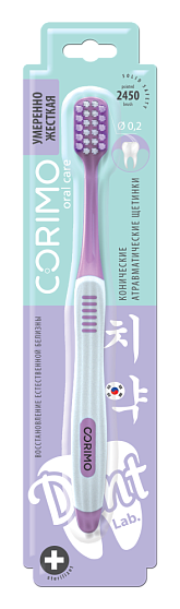 Зубная щетка Corimo умеренно жесткая: белизна зубов и комфорт в использовании Зубная щетка Corimo обеспечивает атравматическое удаление сложного налета от кофе, чая и табака благодаря плотному и узкому расположению пучков. Густая щетина щетки полирует эмаль, предотвращая образование зубного камня. Конические щетинки, созданные по технологии Pointed brush, легко проникают в самые узкие промежутки между зубами, тщательно и бережно вычищая их. Подходит для людей с повышенной чувствительностью зубов и кровоточивостью десен благодаря своей не травмирующей щетине. Выбирайте зубную щетку Corimo для белизны зубов и комфорта в использовании! Цвета в ассортименте.