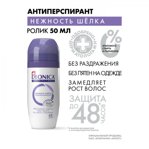 Антиперспирант Deonica Нежность шёлка шариковый, защита 48 часов, 50 мл