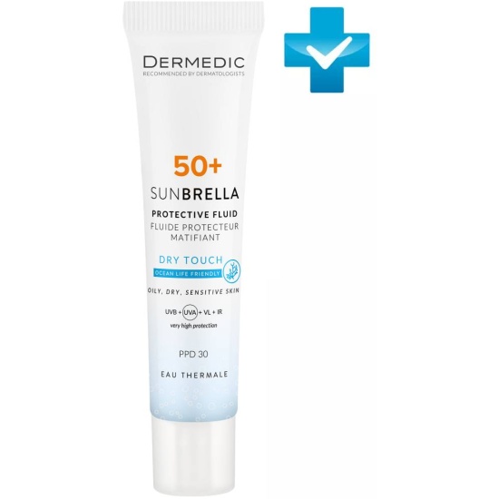 Матирующий защитный флюид DERMEDIC Sunbrella SPF 50+ PPD30, 40 мл Изображение 1 - купить в интернет магазине с доставкой, цены, описание, характеристики, отзывы