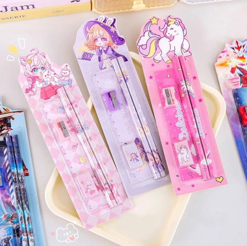 Набор канцелярский - это идеальный комплект, включающий точилку, ластик, линейку и 2 карандаша с яркими и красочными изображениями любимых персонажей.