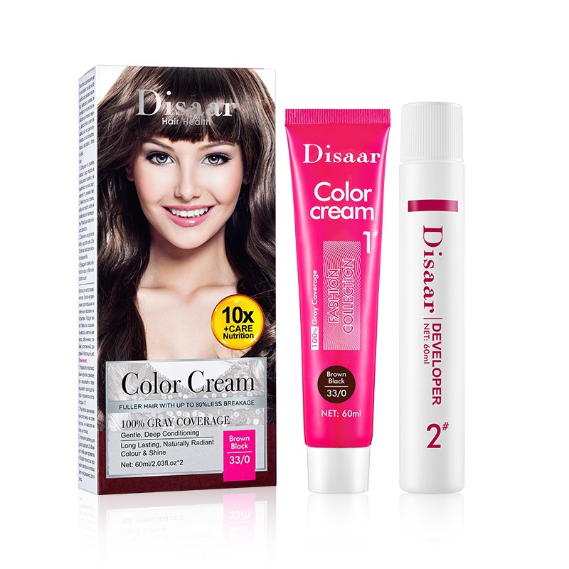 DISAAR Краска для волос COLOR CREAM № 33/0 Brown Black 60мл*2 (DS-5172) (3589)