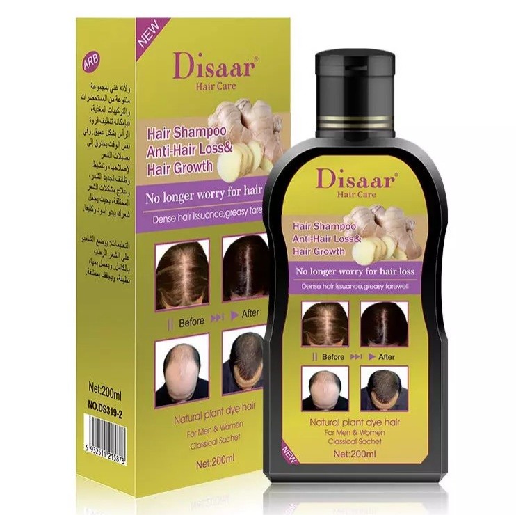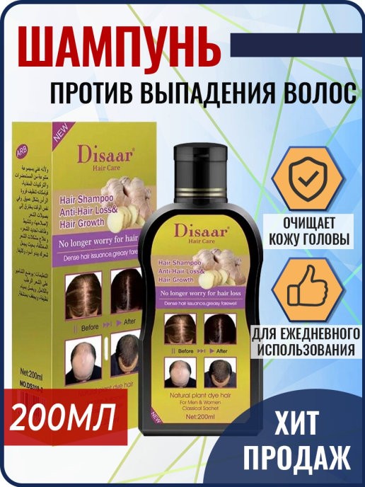 Больше не беспокойтесь о выпадении волос! Прощайте жирные волосы. Наслаждайтесь густыми и красивыми волосами. Уникальный состав шампуня Disaar богат натуральными экстрактами Имбиря и питательными эссенциями, которые глубоко проникают в волосяные фолликулы. Экстракт Имбиря способствует глубокому очищению кожи головы от излишней жирности, устраняя зуд, шелушение и перхоть. Усиливает кровообращение у корней волос, восстанавливая кожный покров, укрепляет луковицы волос, останавливает процесс выпадения волос. Укрепляет волосы по всей длине от корней Пробуждает спящие фолликулы волос, активизирует их здоровый рост. Экстракт ромашки успокаивает кожу головы, смягчает и распутывает волосы, делая их мягкими и шелковистыми. Пышная пена, мягко очищает волосы, освежает и придает им новое дыхание, силу и здоровый блеск!